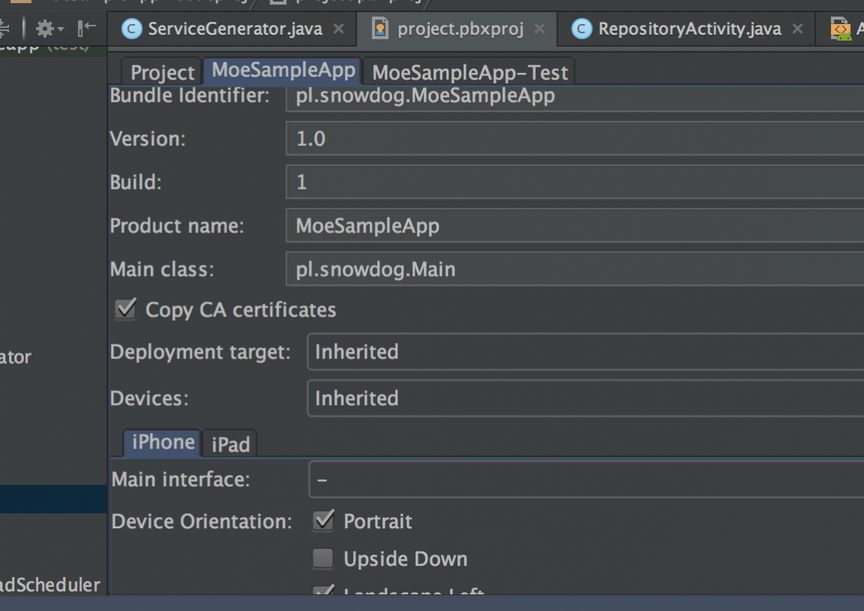 Multi-OS-Engine – MOE for short – is an open source framework, which enables to write iOS and Android application in Java. The most interesting thing is that created apps are compiled to native code and they use common code in Java. It’s saves a lot of time and it’s good idea for Android Developers, who want to have iOS app also. MOE was acquired by Intel in 2015. It’s got good community support and it develops fast. About a month ago new MOE version 1.3 was released. It brings a lot of changes. Unfortunately, existing tutorials hasn’t been updated yet, so we decide to write a series of tutorials, which show step by step, how to create simple MOE app.